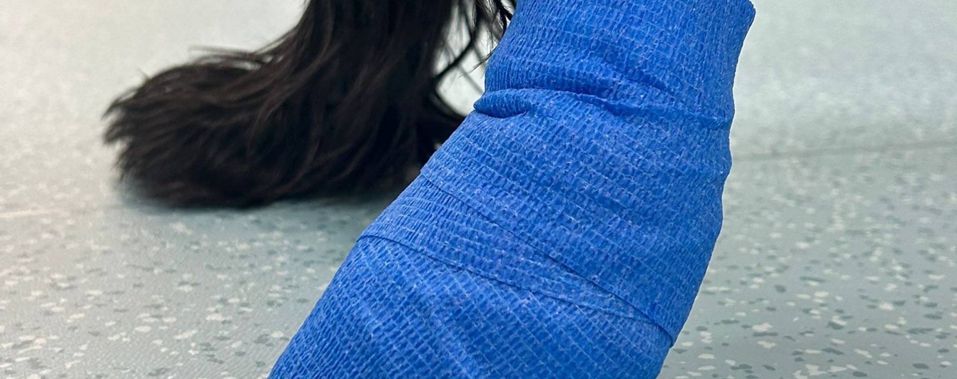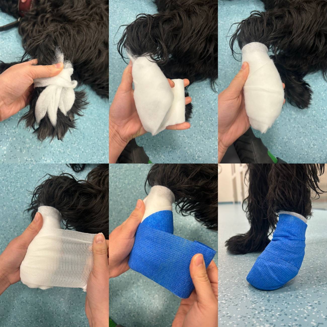 1. Mikäli tassussa on haava, puhdista se, kuivaa hyvin ja suojaa haava jollain tarttumattomalla sidoksella (melolin, solvaline)